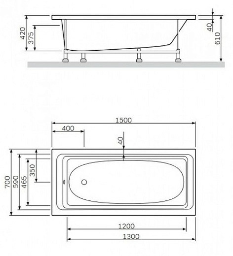 Вертикальные опоры под борта ванны на данной модели установить нельзя из-за конструктивной особенности бортов ванны.
